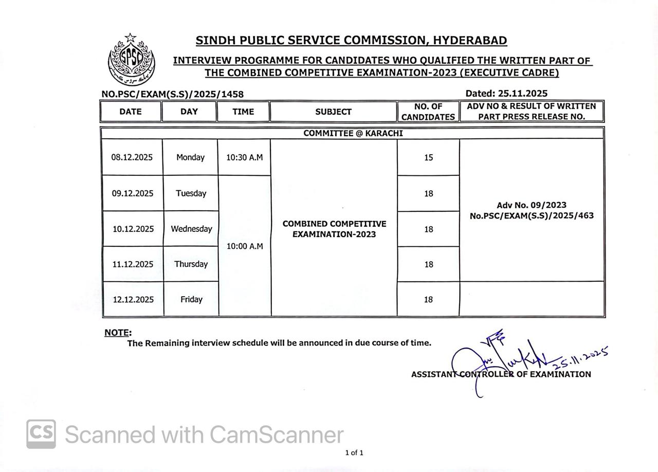 Combined Competitive Examination (CCE-2023) (Executive Cadre)