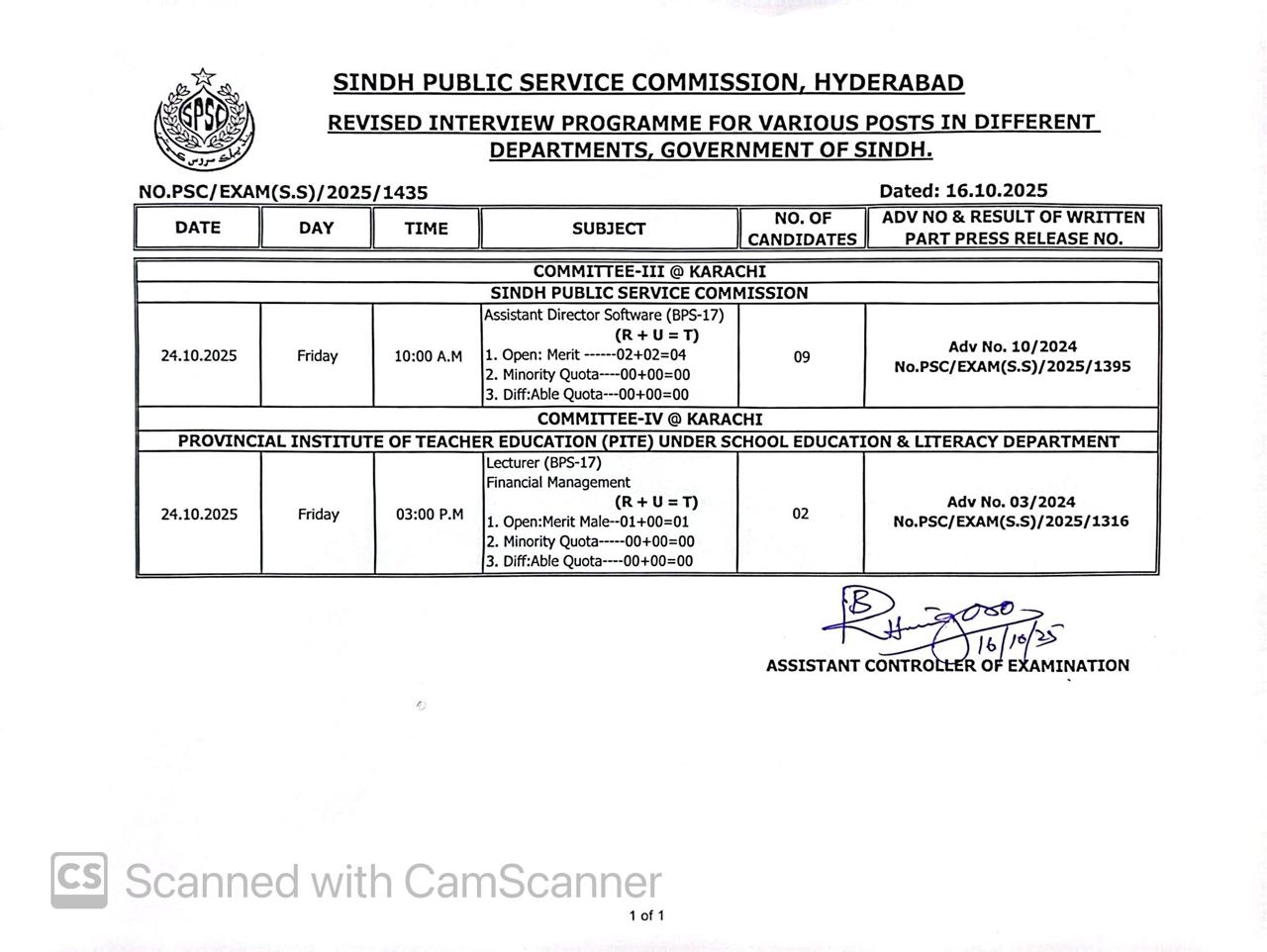 Assistant BPS-16 & Statistical Officer BPS-17 in Sindh Public Service Commission.
