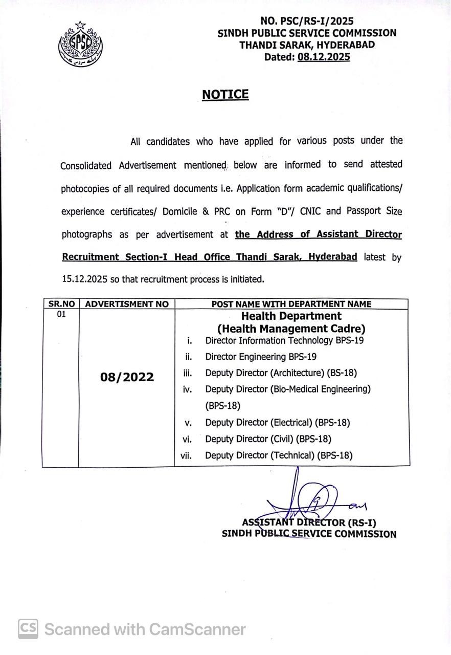 The Sindh Public Service Commission conducted the Pre-Interview Written Test of Senior Law Officer BPS-18 and Law Officer BPS-17 in SPSC and result announced on 14.10.2025. It is hereby notified upon scrutiny no candidate has been found eligible for the Interview, hence the Interviews for the said posts are postponed.
